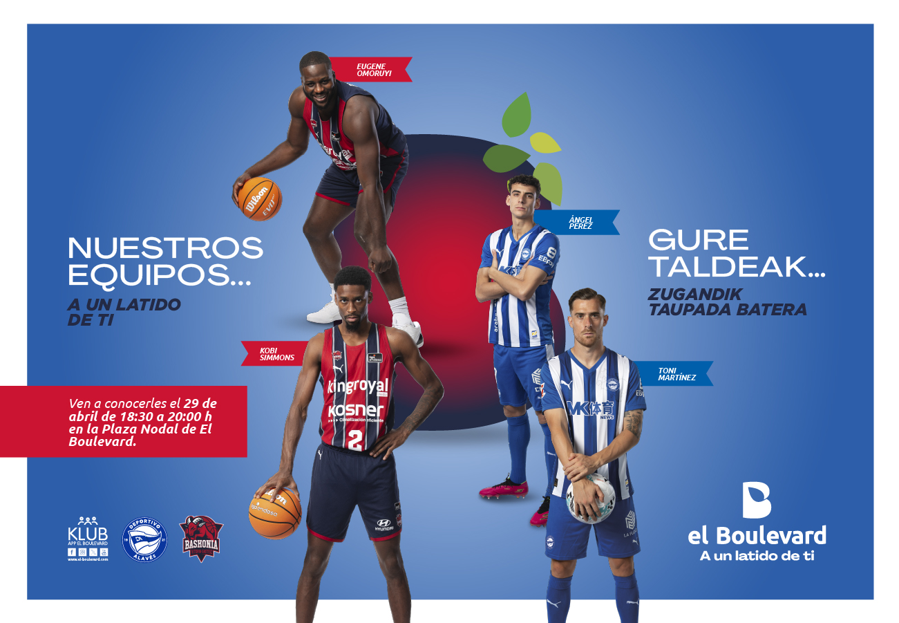 Si eres del Deportivo Alavés o del Baskonia, tienes una cita muy especial en El Boulevard. El miércoles 29 de abril de 18:30 a 20:00h, recibimos en la Plaza Nodal a varios jugadores de ambos equipos para una firma de autógrafos en la que podrás conocerlos en persona, hacerte fotos y llevarte un recuerdo único.